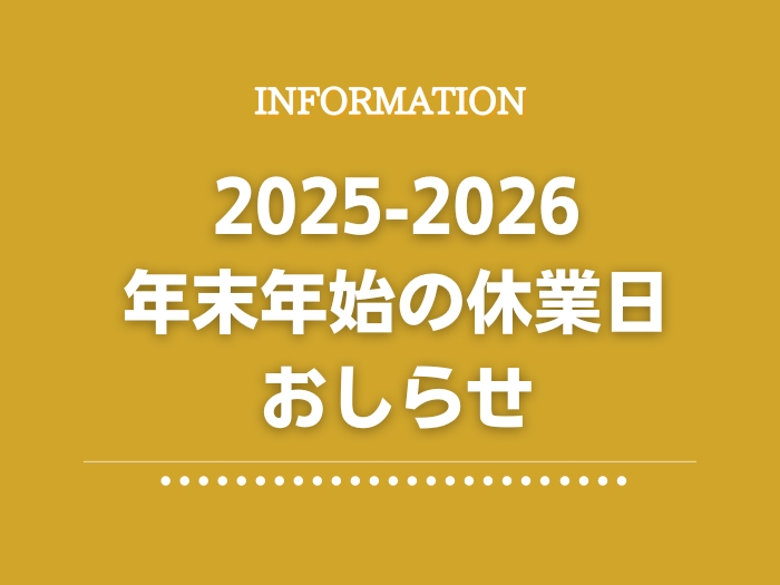 年末年始休業のお知らせ 平素より秋山オート商会をご利用いただき、誠にありがとうございます。 年末年始の営業日について、…